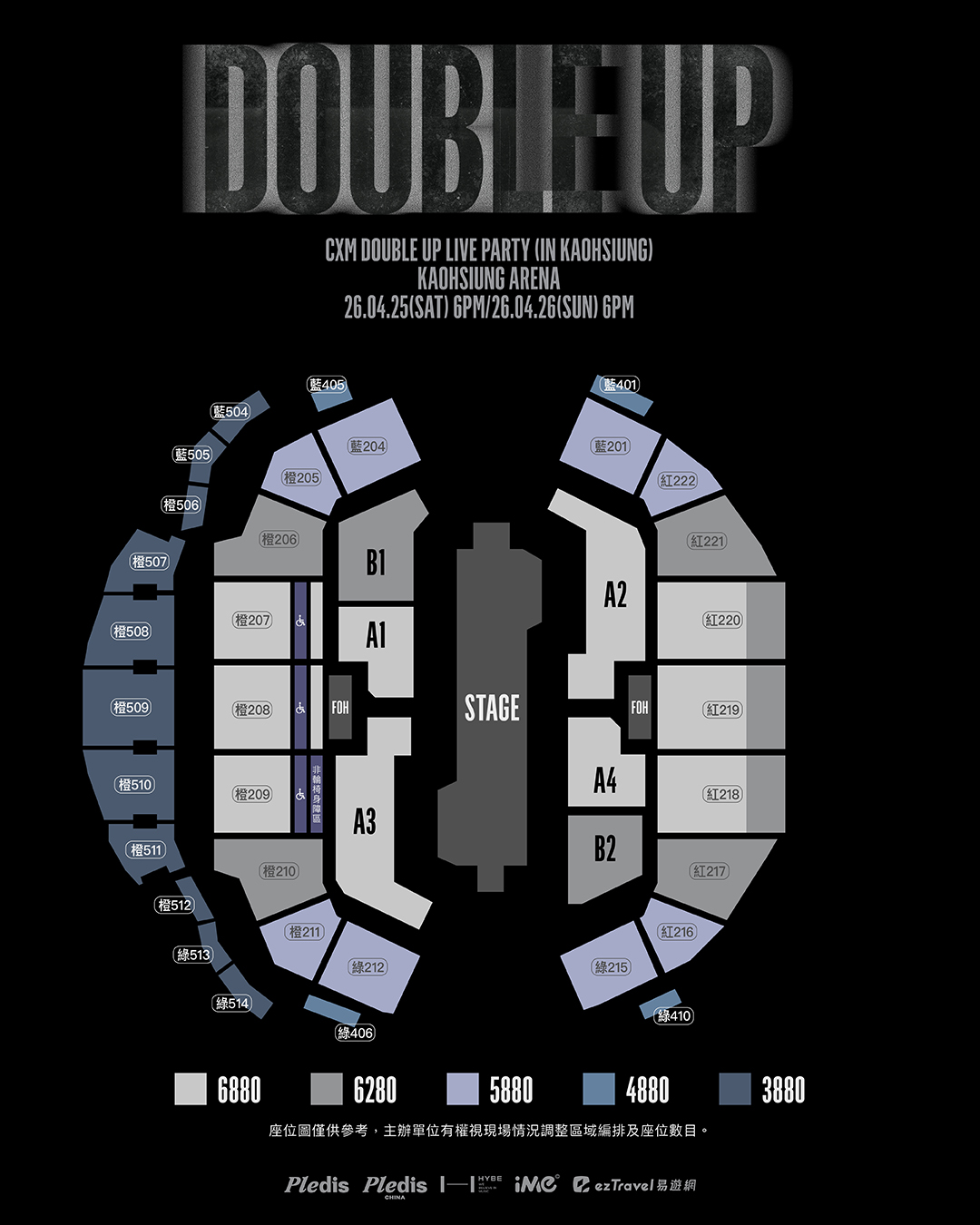 《活動資訊轉自活動售票網站》活動售票網站:拓元售票系統《交通資訊》※高雄巨蛋體育館收費停車場有限,歡迎大家搭乘大眾運輸工具前往※